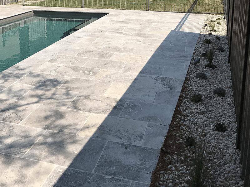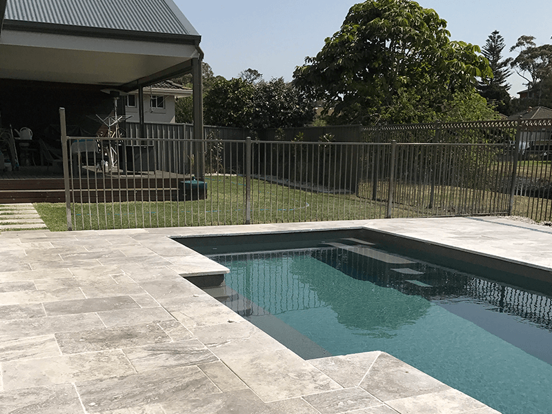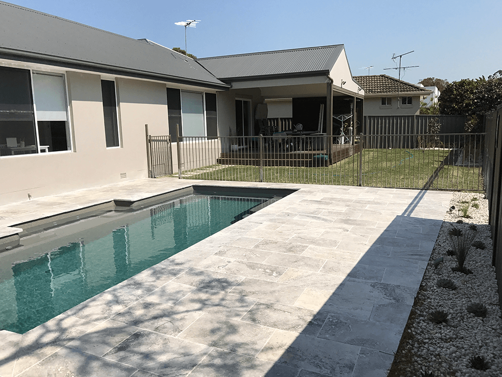 The clients of this property were after a family friendly pool area with a water feature and new bamboo fencing to create an oasis in suburbia. Together with the clients, we decided to go with silver travertine for the pool paving and dark quartz for the water feature to tie in with the dark bamboo screening around the boundaries. The clients were on a tight budget for this job but after working with us through the design process we were able to achieve exactly what they wanted for what they had budgeted for.