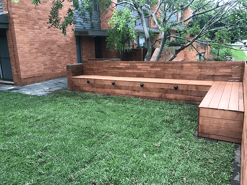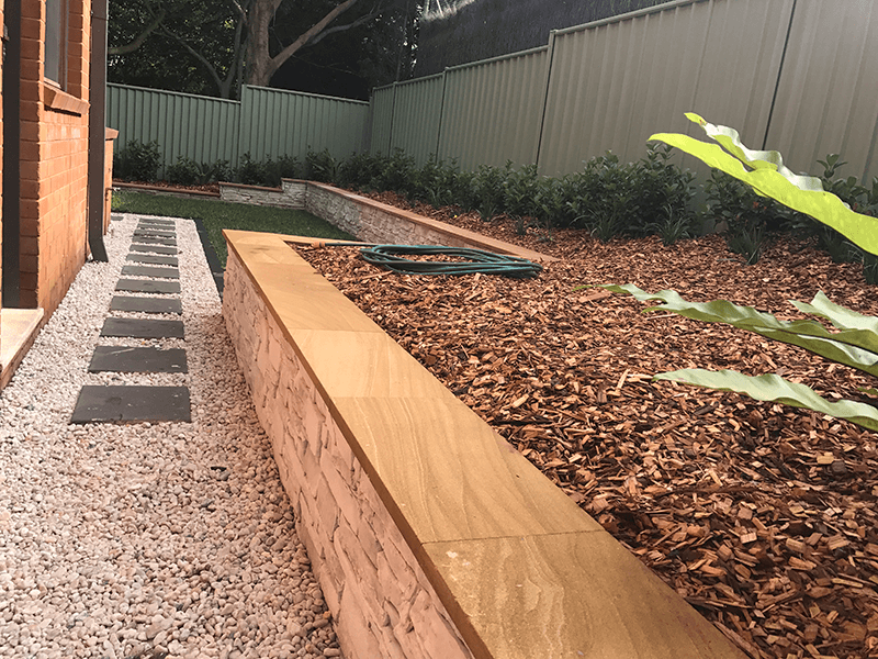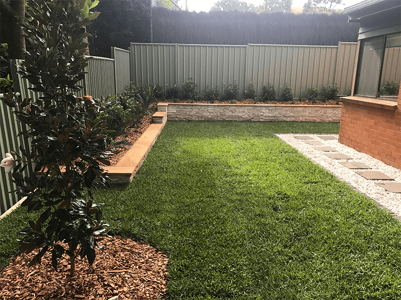 A complete overhaul of the backyard was what this client was after in Sydney’s lower North shore suburbs of Wollstonecraft. This client was no longer in need of a pool and therefore had our team completely clear out the site and to turn it into an entertainers dream. Situated right near lush bushland and surrounded by sandstone, we decided to open up the backyard as well as filling in the pool. We added merbau screening around the property for extra privacy, a floating bench and a complete new paved area ready for guests to enjoy. We installed retaining walls and added ambiance by installing garden lighting. Finally, to complete this project the installation of a fire pit created a focal point for family and friends to sit around and take in the selection of soft landscapings chosen to tie in with the local bushland.