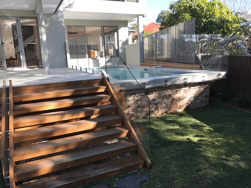 We were approached by this client to complete a full landscape package for their brand-new home. The driveway is sealed coloured concrete with a hand cove finish, we used blackbutt hardwood for the screening to match in with the decking around the pool and then we decided to use some sandstone cladding and sandstone edging to add a unique look to what would have been something otherwise quite basic. We used flagging stones as stepping stones through a native garden to create that country feel for an escape from reality.