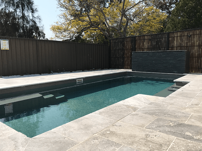 The clients of this property were after a family friendly pool area with a water feature and new bamboo fencing to create an oasis in suburbia. Together with the clients, we decided to go with silver travertine for the pool paving and dark quartz for the water feature to tie in with the dark bamboo screening around the boundaries. The clients were on a tight budget for this job but after working with us through the design process we were able to achieve exactly what they wanted for what they had budgeted for.