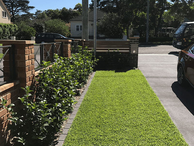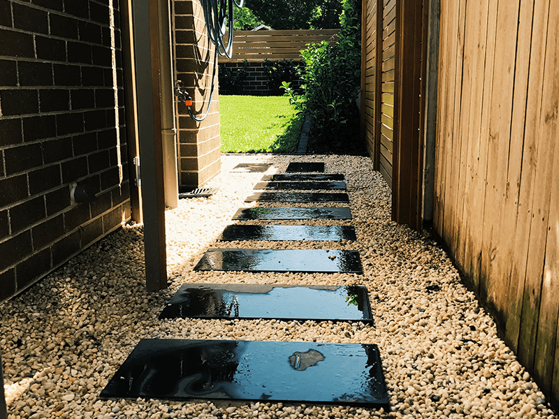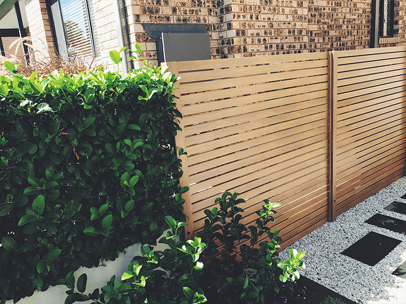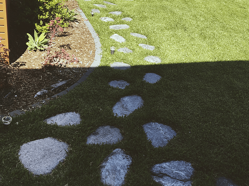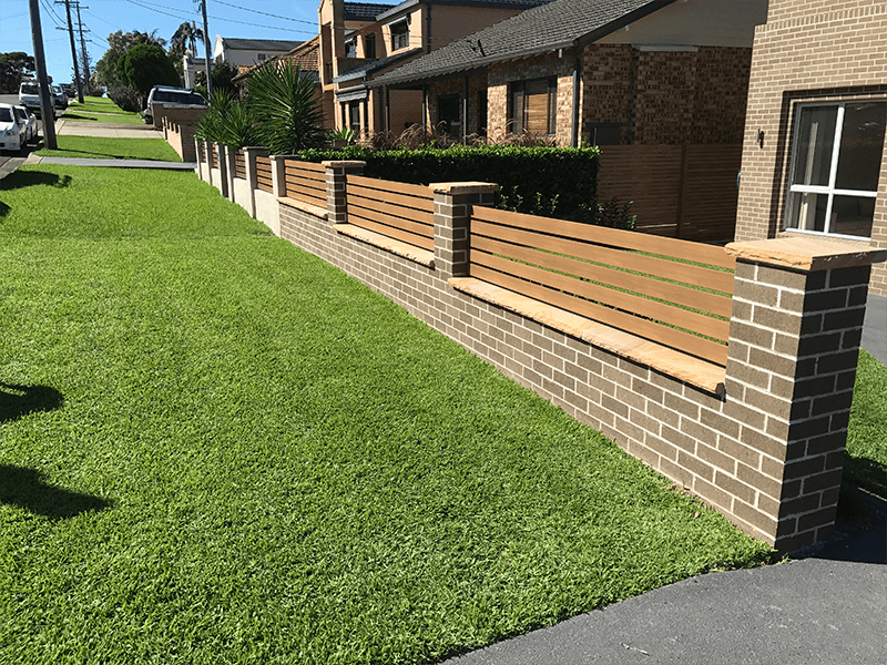 This particular client was after a whole landscape package with an emphasis on being low maintenance. This job consisted of multiple areas and features specific to what the client was after. We provided our clients with boundary retaining walls to level the entire back yard, we then constructed the front brick wall with sandstone capping and aluminium slats, a rock finish driveway, cobblestone seating area with rough sawn sandstone seating, a cast iron fire pit, aluminium screening, gates and decking, bluestone stepping stones, brick edging and a water feature. We also installed lighting, irrigation, garden beds and turfing.