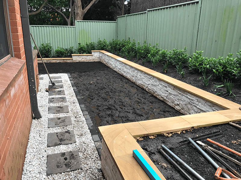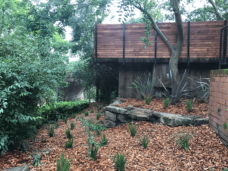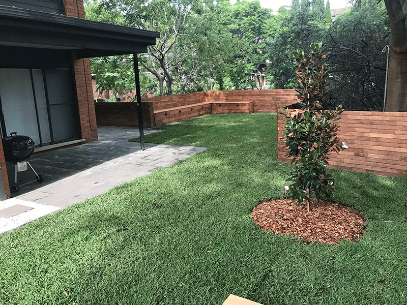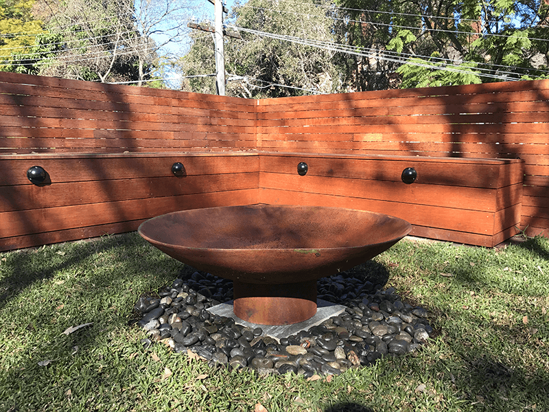 A complete overhaul of the backyard was what this client was after in Sydney’s lower North shore suburbs of Wollstonecraft. This client was no longer in need of a pool and therefore had our team completely clear out the site and to turn it into an entertainers dream. Situated right near lush bushland and surrounded by sandstone, we decided to open up the backyard as well as filling in the pool. We added merbau screening around the property for extra privacy, a floating bench and a complete new paved area ready for guests to enjoy. We installed retaining walls and added ambiance by installing garden lighting. Finally, to complete this project the installation of a fire pit created a focal point for family and friends to sit around and take in the selection of soft landscapings chosen to tie in with the local bushland.