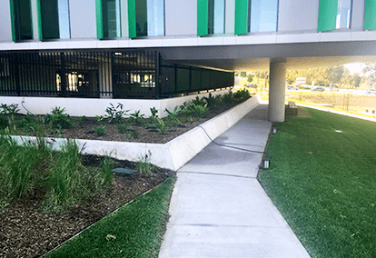 Unique Outdoors was approached to manage the landscaping at the University of Western Sydney, Penrith Campus for Adco Constructions. Unique Outdoors worked with Adco to complete the job on time and on budget, which involved working on landscaping and civil works, concreting, timber work, paving and soft landscape tasks.